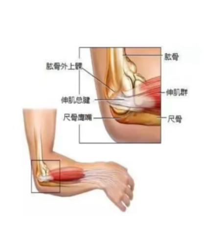 "网球肘"医学学名肱骨外上髁炎,是一种常见的肘关节劳损性疾病,常于骨科、康复科、运动医学科就诊治疗。网球肘这一名称源于1883年,当时医生注意到参加网球赛的运动员特别容易得此病,尽管该病与网球运动有关,但并非仅限于网球运动员,事实上,任何频繁使用手臂和手腕的人群都可能中招,比如家庭主妇、程序员、装修工人、健身爱好者等。其主要表现为肘关节外侧疼痛、握力减弱,前臂伸肌群过度使用或反复受力,导致附着在肱骨外上髁上的肌肉和肌腱受损而容易患病。