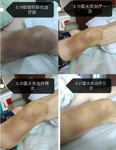 在征得患者同意后,余玛玲护士长为其制定了详细的雷火灸治疗方案。经过短期的精心治疗,效果立竿见影。患者四肢原本青紫的瘀斑以肉眼可见的速度变浅、缩小,皮肤的紧绷胀痛感也得到了极大缓解。(见附图)