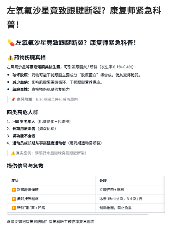 左氧氟沙星竟致跟腱断裂?康复师紧急科普!