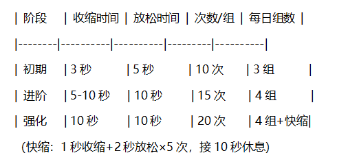 肌力提升:凯格尔收缩可坚持≥10秒