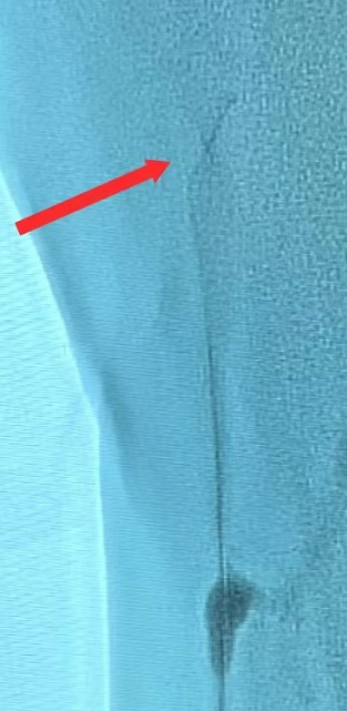 本次接受手术的患者因下肢严重静脉曲张长期困扰,传统手术创面多、恢复慢。介入医学科团队经综合评估,决定启用更安全的MOCA(机械化学消融术)新疗法。手术中,医生巧妙通过极细的导管插入大隐静脉主干,距隐股静2cm处启动消融装置,导管头端高速旋转对大隐静脉内膜进行机械破坏。同时自导管的注药口注入3%浓度的聚多卡醇泡沫硬化剂对大隐静脉内膜进行化学破坏。机械破坏闭合+化学消融闭合。两种方式叠加处理,闭合效果更好。患者术后即恢复行走能力,返回病区,腿部胀痛迅速缓解。