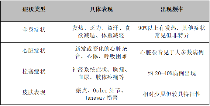 2.症状识别要及早:不明原因发热持续5天以上、新出现心脏杂音、乏力盗汗等全身症状,以及各类栓塞表现应怀疑感染性心内膜炎可能。