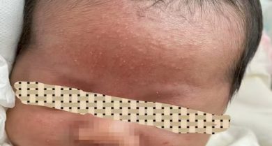 出生后1至3天出现,表现为面部、躯干及四肢的红色斑疹或丘疹,部分伴轻微脱屑,无脓性分泌物。