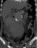 紧急的增强CT检查结果,证实了我们的最坏猜想:肠系膜上动脉的一个分支上,有一个动脉瘤破裂了! 血液正从破口不断涌入腹腔。