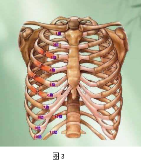 结合肋骨解剖图(图3)能看到,肋骨紧紧包着肺,骨折后肺很容易受影响,做好这两点能防麻烦: