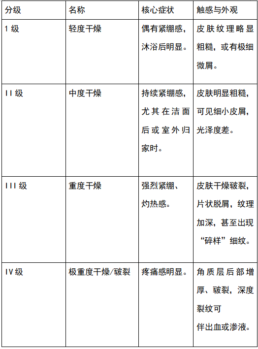 二、皮肤干燥程度自我评估与分级标准