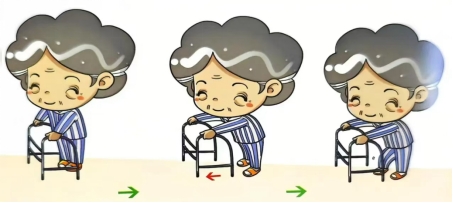 训练方法:在助行器或拐杖的辅助下,患者尝试站起,慢慢向左右两侧活动,还可以缓慢下蹲、原地踏步、抬腿、扶稳后移动。