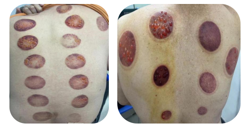 不久前,45岁的杨某在一家理疗店拔火罐,却造成背部深Ⅱ度烧伤。背上15个罐,其中9个扣罐处烧伤。还有一位50岁的李某某自己在家拔火罐,也导致皮肤烧伤。