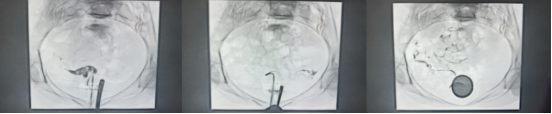 依据宫腔轮廓反向推断,输卵管开口极有可能隐藏在右侧宫角肌性隔断的后方。但这个位置,常规导管根本无法触及。谭一清教授立即换用头端可塑形微导管,将导管头端弯成15度的完美弧度,绕过错综复杂的肌性隔断,稳稳抵达目标位置——误差不超过1毫米。