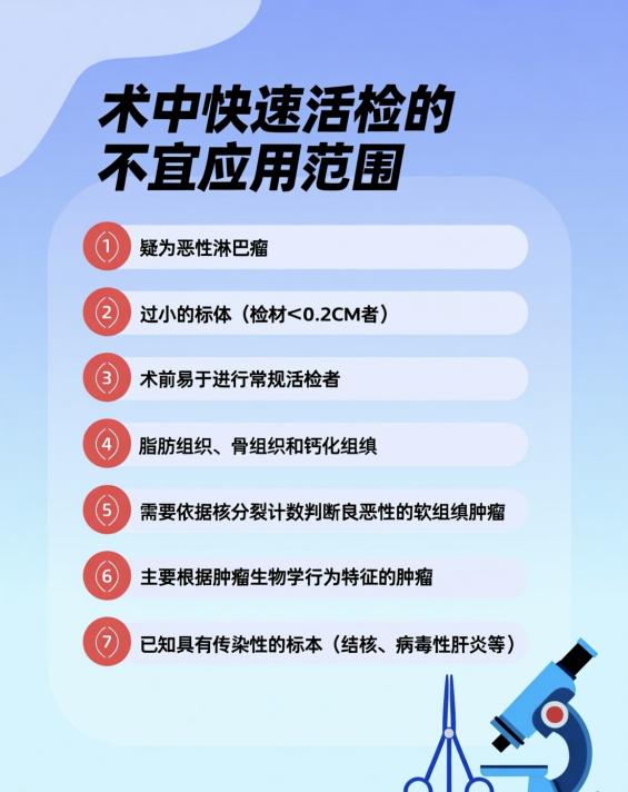 局限性:诊断准确率约95%,无法达到100%精确。因为时间紧、切片质量略差,且没有时间做免疫组化和基因检测。因此,术后还必须做常规石蜡病理,并以石蜡病理报告为最终诊断和治疗的“金标准”。