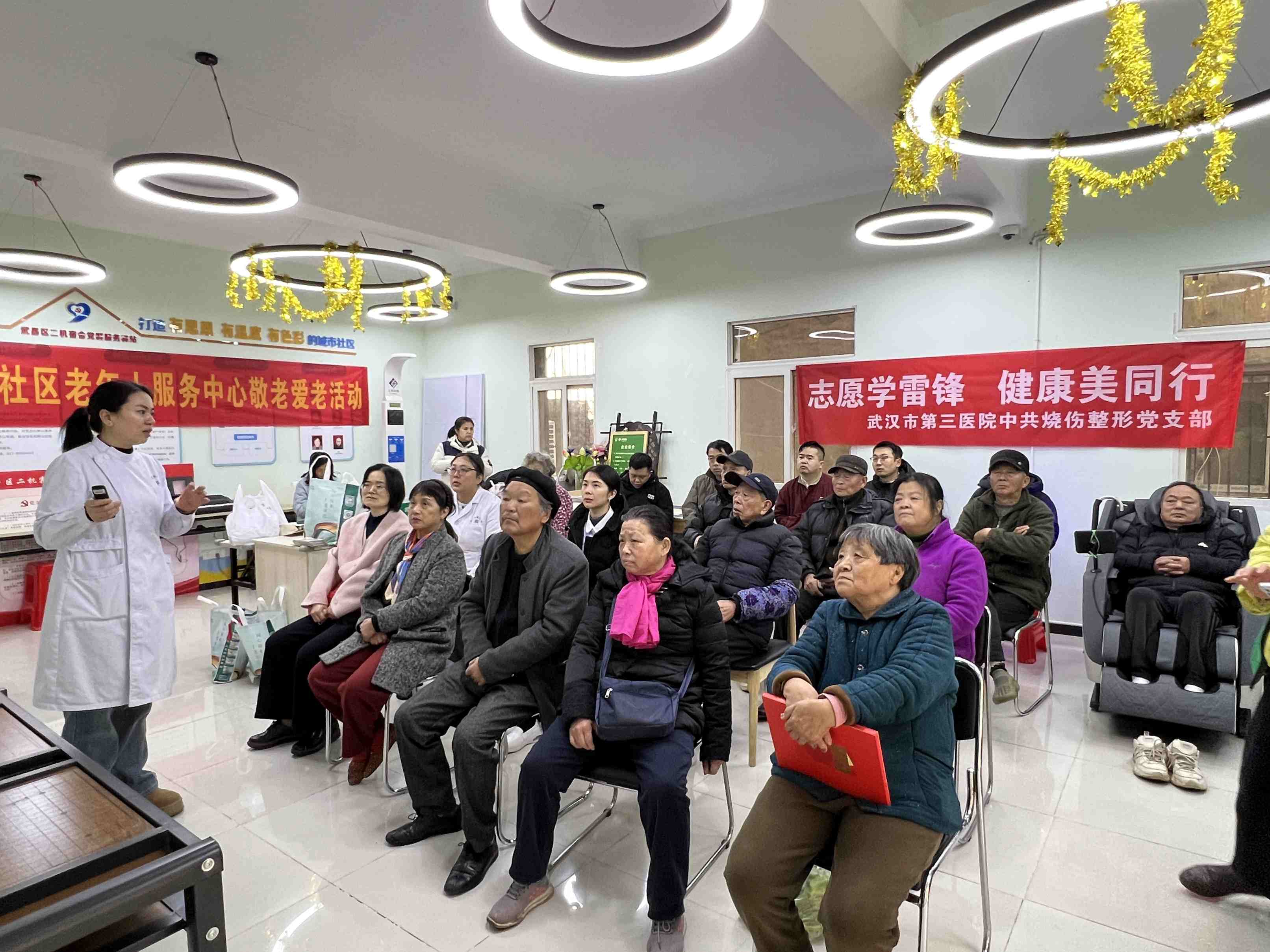 春风送暖,志愿同行。在3·5学雷锋纪念日到来之际,为传承弘扬雷锋精神,把优质医疗服务与健康关怀送到居民身边,在3·5学雷锋纪念日来临之际,2026年3月5日上午,武汉市第三医院烧伤整形党支部精心组织的开展“志愿学雷锋,健康美同行”多学科联合义诊活动,在花堤街社区社区二机宿舍片区圆满举行。本次活动聚焦居民日常健康需求,集结心内科、消化内科、口腔科、烧伤科和整形科五大专业科室医师力量,以专题健康科普+一对一义诊咨询+便民健康服务的形式,为辖区居民带来一场专业、全面、贴心的公益健康服务,用实际行动践行志愿服务精神,让雷锋精神在新时代落地生根。