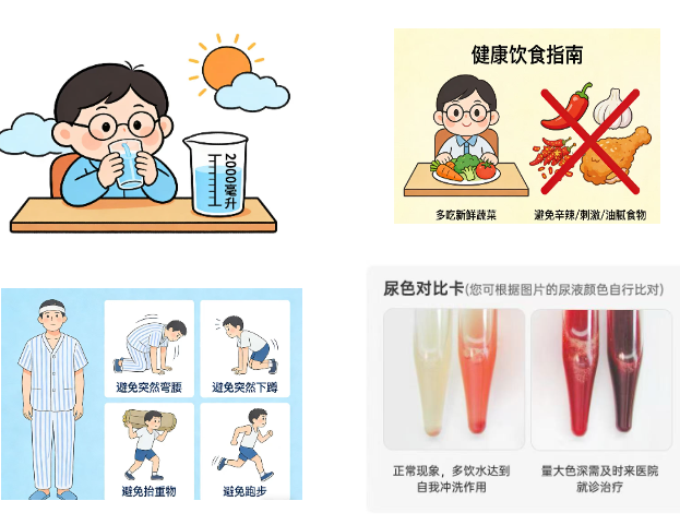 术后身体处于恢复阶段,要保证充足的休息时间,避免过度劳累、熬夜,减少体力消耗,缓解术后疼痛与不适,助力伤口和尿路黏膜修复。