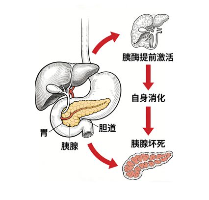 正常情况下,消化酶到肠道才被激活,但若提前在胰腺内部激活,就会“攻击”胰腺及周围器官,这就是“胰腺自身消化”。